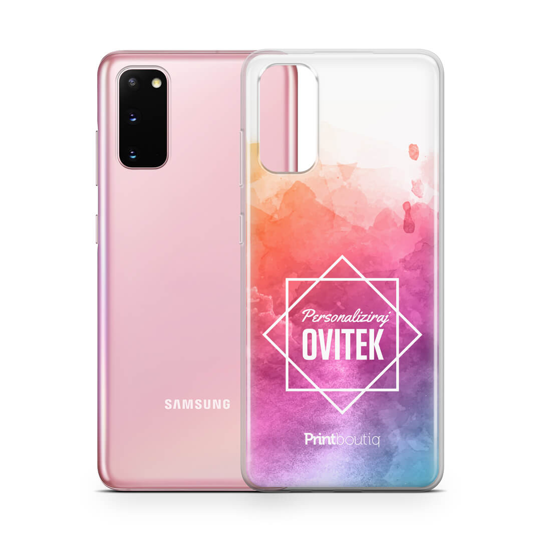 Zaščiti svoj Samsung Galaxy S20 z ovitkom, ki si ga lahko oblikuješ sam/-a. Mehak TPU »silikonski« ovitek je v osnovi prozoren (Crystal Clear). Oblikovan je tako, da ščiti vse robove in hrbet telefona in mu s tem nudi odlično zaščito pred padci in praskami. Kljub temu nudi 100% dostop do vseh gumbov in priključkov.